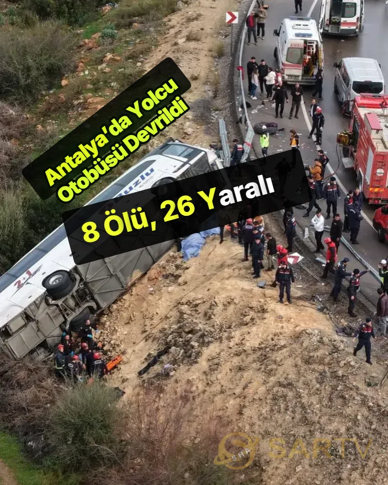 Tekirdağ’dan Antalya’ya gitmekte olan yolcu otobüsü, Döşemealtı ilçesi Kömürler Kavşağı’nda kaygan zeminde virajı alamayarak şarampole devrildi. Sabah 10.20’de meydana gelen kazada 8 kişi hayatını kaybetti, 26 kişi yaralandı. Yaralılar çevredeki hastanelere kaldırılırken, bazıların durumunun ağır olduğu bildirildi.