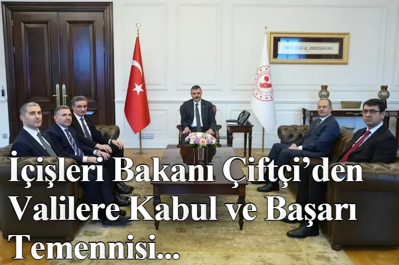 Cumhurbaşkanı Recep Tayyip Erdoğan’ın tensipleriyle yeni görev yerlerine atanan Afyonkarahisar Valisi Naci Aktaş, Hakkari Valisi İbrahim Taşyapan, Uşak Valisi Serdar Kartal, Erzurum Valisi Aydın Baruş ve Gümüşhane Valisi Cevdet Atay, İçişleri Bakanı Mustafa Çiftçi tarafından kabul edildi.