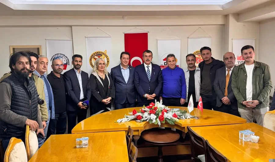 Millî Eğitim Bakanı Yusuf Tekin, çeşitli temaslarda bulunmak üzere geldiği Erzurum’da Doğu Anadolu Gazeteciler Cemiyeti’ni (DAGC) ziyaret etti. Bakan Tekin’e ziyaretinde Erzurum Valisi Mustafa Çiftçi, Erzurum Büyükşehir Belediyesi Genel Sekreteri Zafer Aynalı ve İl Millî Eğitim Müdürü Süleyman Ekici eşlik etti. DAGC Yönetim Kurulu Başkanı Ayhan Türkez tarafından karşılanan Bakan Tekin’e, cemiyetin faaliyetleri hakkında kapsamlı bir sunum yapıldı. Türkez, bölgedeki basın mensuplarının karşılaştığı sorunları da gündeme getirerek çözüm önerilerini Bakan Tekin’e iletti. İletişim Meslek Lisesi Talebi Ziyarette önemli bir talebi de gündeme getiren Türkez, Atatürk Üniversitesi İletişim Fakültesi’nin sektöre nitelikli iletişimciler kazandırma konusundaki rolüne dikkat çekti. Bu çerçevede, Erzurum’da ortaöğretim düzeyinde bir iletişim meslek lisesinin kurulmasının büyük bir ihtiyaç olduğunu vurgulayan Türkez, bu konuda Millî Eğitim Bakanlığı’nın desteğini beklediklerini ifade etti. Eğitim Yatırımları Konuşuldu Ziyaret sırasında Erzurum’daki eğitim yatırımları üzerine de değerlendirmelerde bulunan Bakan Tekin, yerel basın mensuplarıyla bir süre sohbet etti. Eğitim alanındaki projeler ve hedefler üzerine fikir alışverişinde bulunulan görüşmenin ardından, DAGC Yönetim Kurulu üyeleri ve gazetecilerle hatıra fotoğrafı çektirildi. Plaket Takdimiyle Son Buldu Nazik ziyareti anısına DAGC Başkanı Ayhan Türkez ve Doğu Anadolu Gazeteciler Federasyonu Genel Başkanı İrfan Tarakçıoğlu tarafından Bakan Tekin’e plaket takdim edildi. Ziyaret, karşılıklı iyi niyet mesajlarıyla sona erdi.