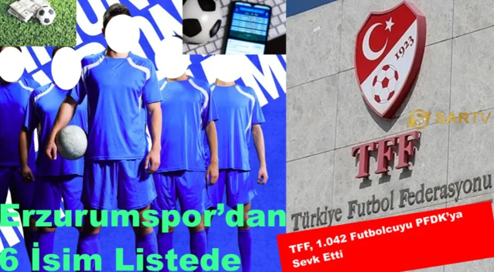 Türkiye Futbol Federasyonu (TFF), profesyonel liglerde forma giyen 1.042 futbolcuyu, bahis oynadıkları iddiasıyla Profesyonel Futbol Disiplin Kurulu’na (PFDK) tedbirli olarak sevk ettiğini duyurdu. Süper Lig’den 47 oyuncunun yer aldığı listede, Erzurumspor’dan da 6 futbolcu bulunuyor.